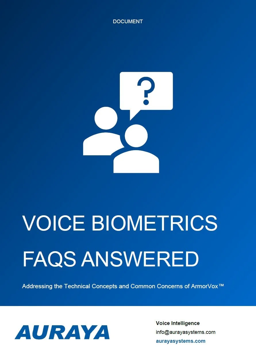 This document provides an overview of frequently asked questions regarding voice biometric implementation with ArmorVox. ArmorVox is Auraya’s proprietary voice biometric engine. It is designed with advanced machine learning algorithms and is speaker adaptive. It delivers superior privacy, security and user experience outcomes for businesses and individuals globally. In this document, we explore technical concepts and common concerns regarding voice biometrics (such as user security and privacy) and how ArmorVox optimizes performance across these measures.